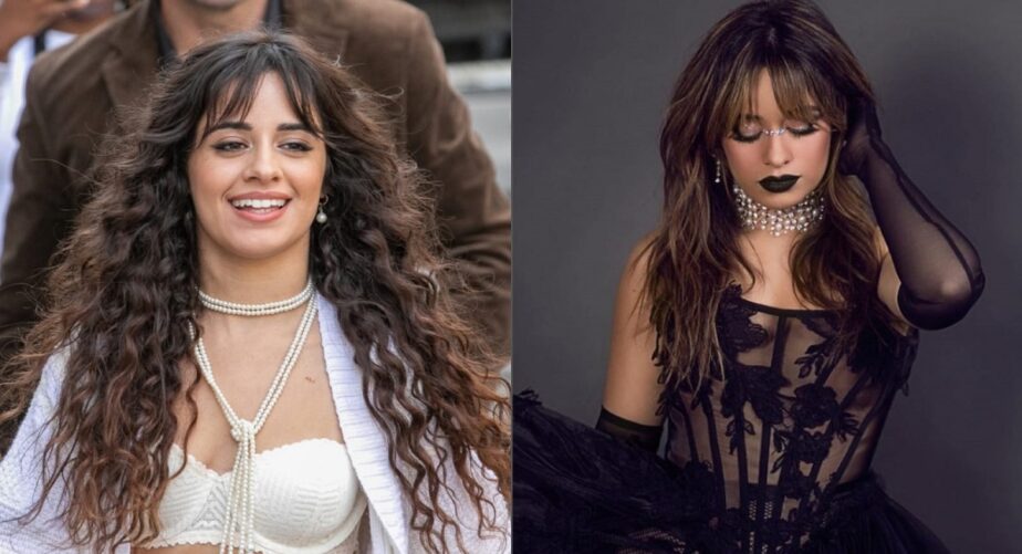 Camila usó un vestido enfadado con volantes dramáticos y transparencias sensuales, que recuerdan el estado de humor "sombreado" de Merlina Addams. Igualmente acompañó su look con guantes y labios pintados de enfadado.